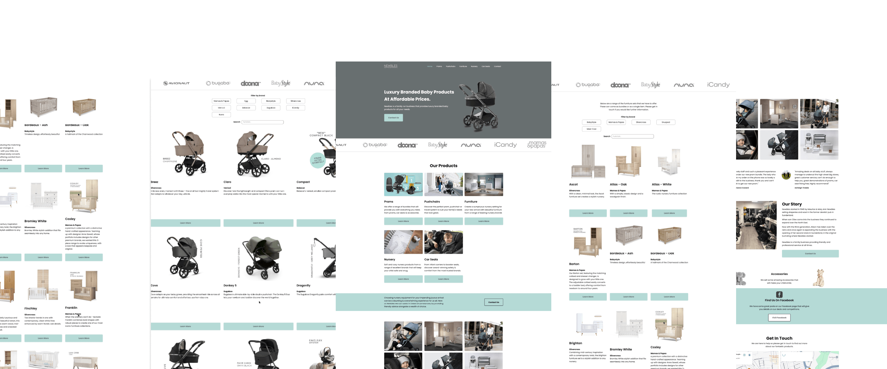 Showcasing key product categories including prams, pushchairs, furniture, nursery items and car seats, the website uses a clear and structured layout to help visitors quickly find what they need. Fully optimised for desktop and mobile, the site makes it easy for potential customers to browse, learn more about the business, and get in touch with either store.